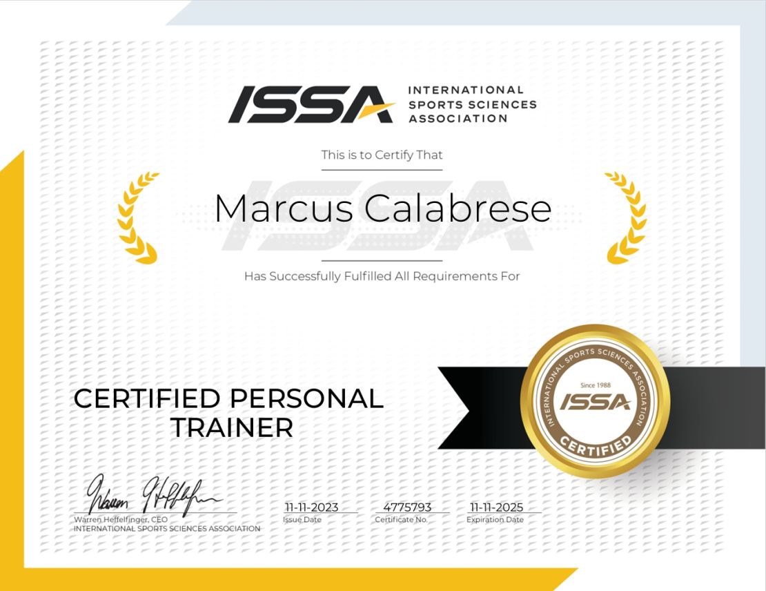 Training is about results that matter to you. This certification, backed by the International Sports Sciences Association (one of the most respected organizations in fitness education worldwide), means every plan is built around proven science and tailored to your body, goals, and pace. Whether you want to get stronger, improve energy, or feel healthier day to day, it ensures you’ll have safe, structured guidance that leads to lasting progress.